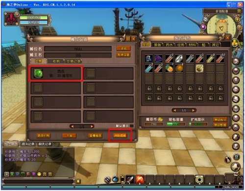 4,点击快捷键“B”打开我的背包,玩家点选包裹里的物品,将需要出售的物品移至左边空白区域。
