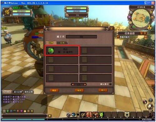 2,确认价格后,买家鼠标左键点击“购买”即完成买卖。买主金钱不够或者背包空间不足不能交易。此外,摆摊不存在讨价还价,玩家确定购买,该物品就会从摊主那里转到买家的包裹内,系统自动扣除买家相应的金钱给摊主,并在左下角显示交易记录。