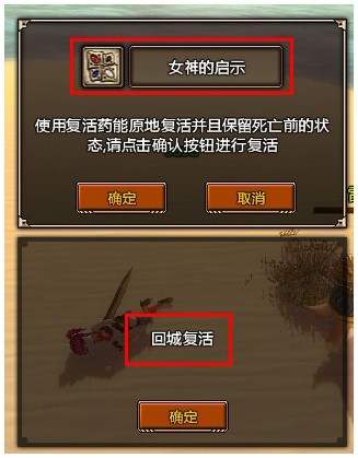 拾取物品 你只要站在需要拾取的物品旁,按键盘“空格键”或者点击鼠标左键,即可拾取物品到[背包]中。 战败死亡 当您遇到强大的BOSS或被一群怪物围住时,就会面临战败死亡的威胁。您在死亡后,可以直接选择回城复活或使用“复活药”进行原地复活。