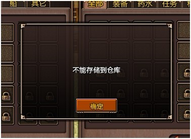 如果出现不能存放的物品会出现“不能存储到仓库”此提示