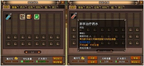 当背包满时可将物品存于仓库中,在冒险港与相应的NPC对话